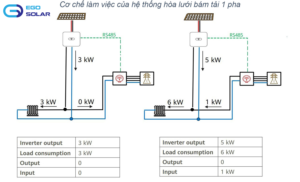 Điện mặt trời hoà lưới bảm tải là nó sẽ ưu tiên sử dụng điện sản xuất từ mặt trời trước và chỉ sử dụng điện lưới khoảng 1-10% tuỳ cách cấu hình của người lắp đặt.